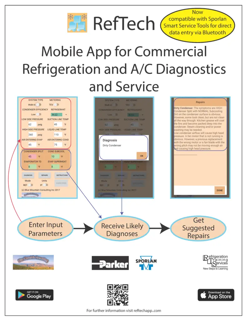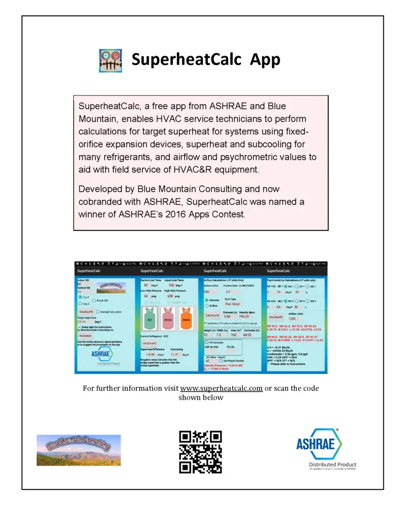 Blue Mountain offers two mobile app - SuperheatCalc and RefTech - for use by technicians and engineers